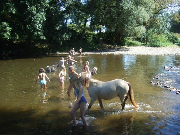 Bitte Reit/Fahrradhelm, Badesachen, lange Hosen und festes Schuhwerk zum Reiten mitbringen. Auch die Eltern sollten feste Schuhe