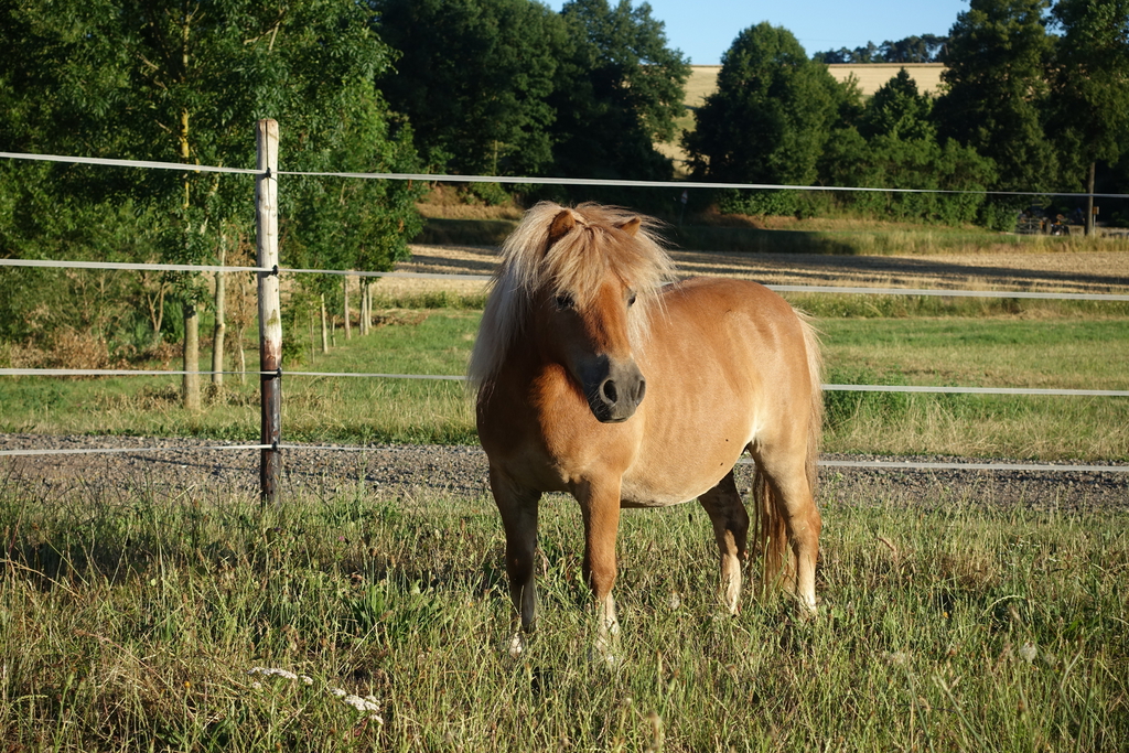 Dolly ist ein kinderfreundliches temperamentvolles Shetty. Sie kennt geführte Ausritte mit Kleinkindern, tritt und beißt nicht.