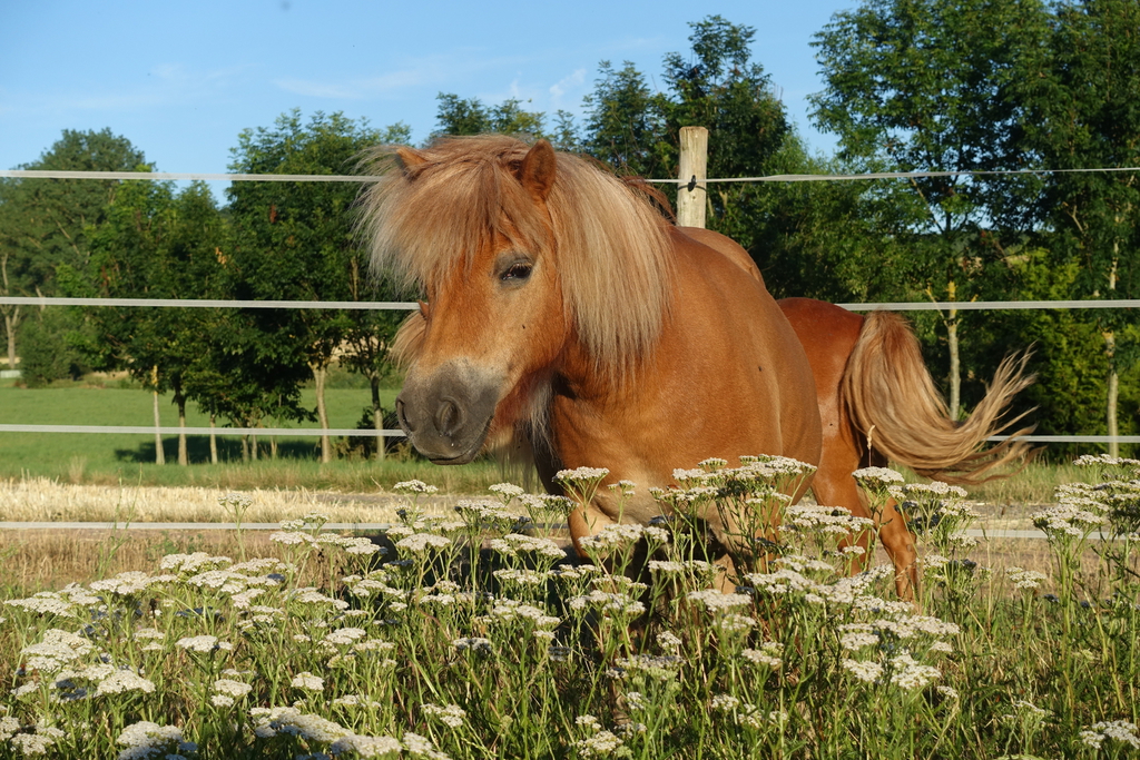 In der Stutenherde ist sie eher eine in der vorderen Reihe und kann sich auch gut durchsetzen. Trotz allem ist sie eine sehr soziale Stute und hat bei uns auch schon gefohlt. Sie ist eine ganz